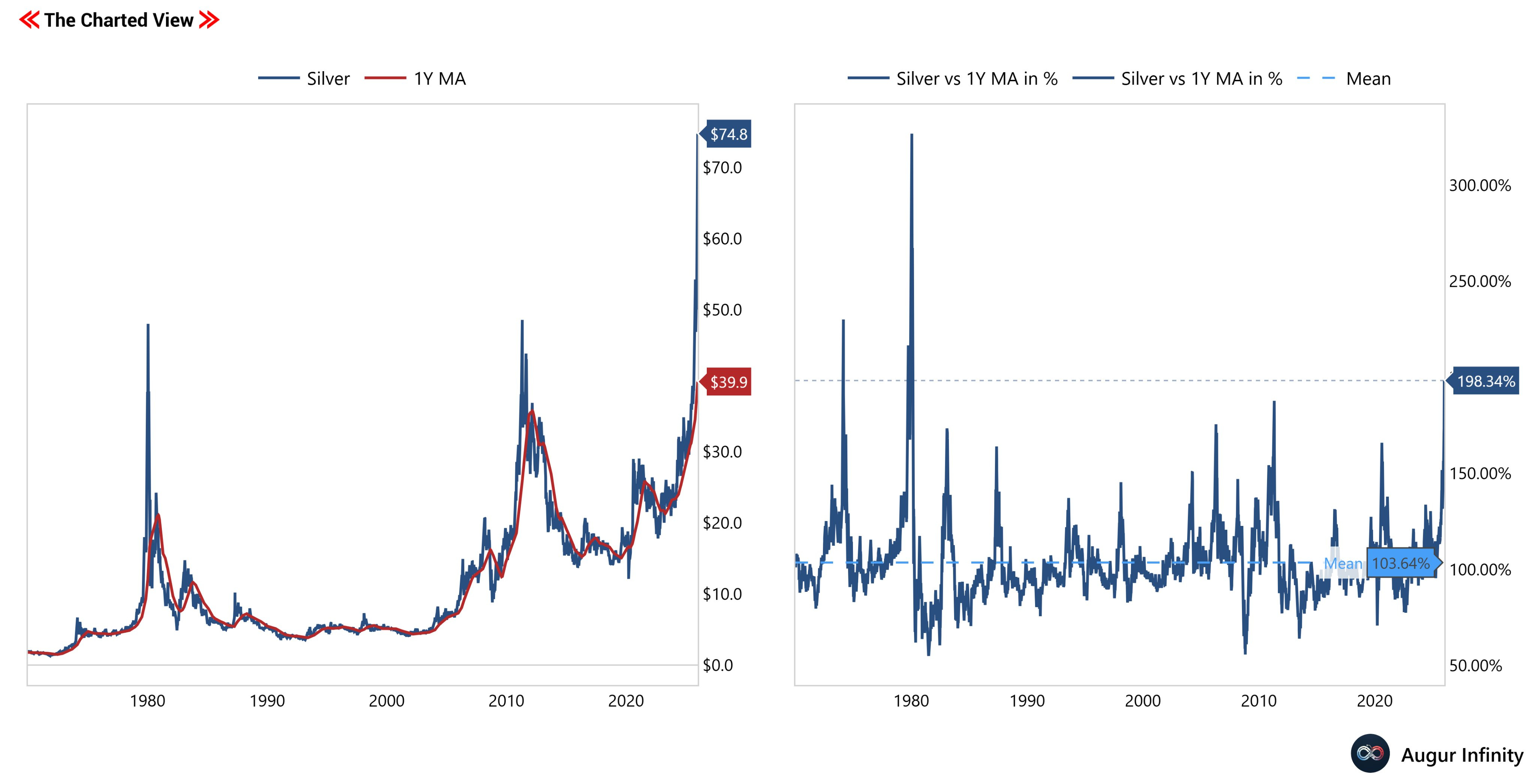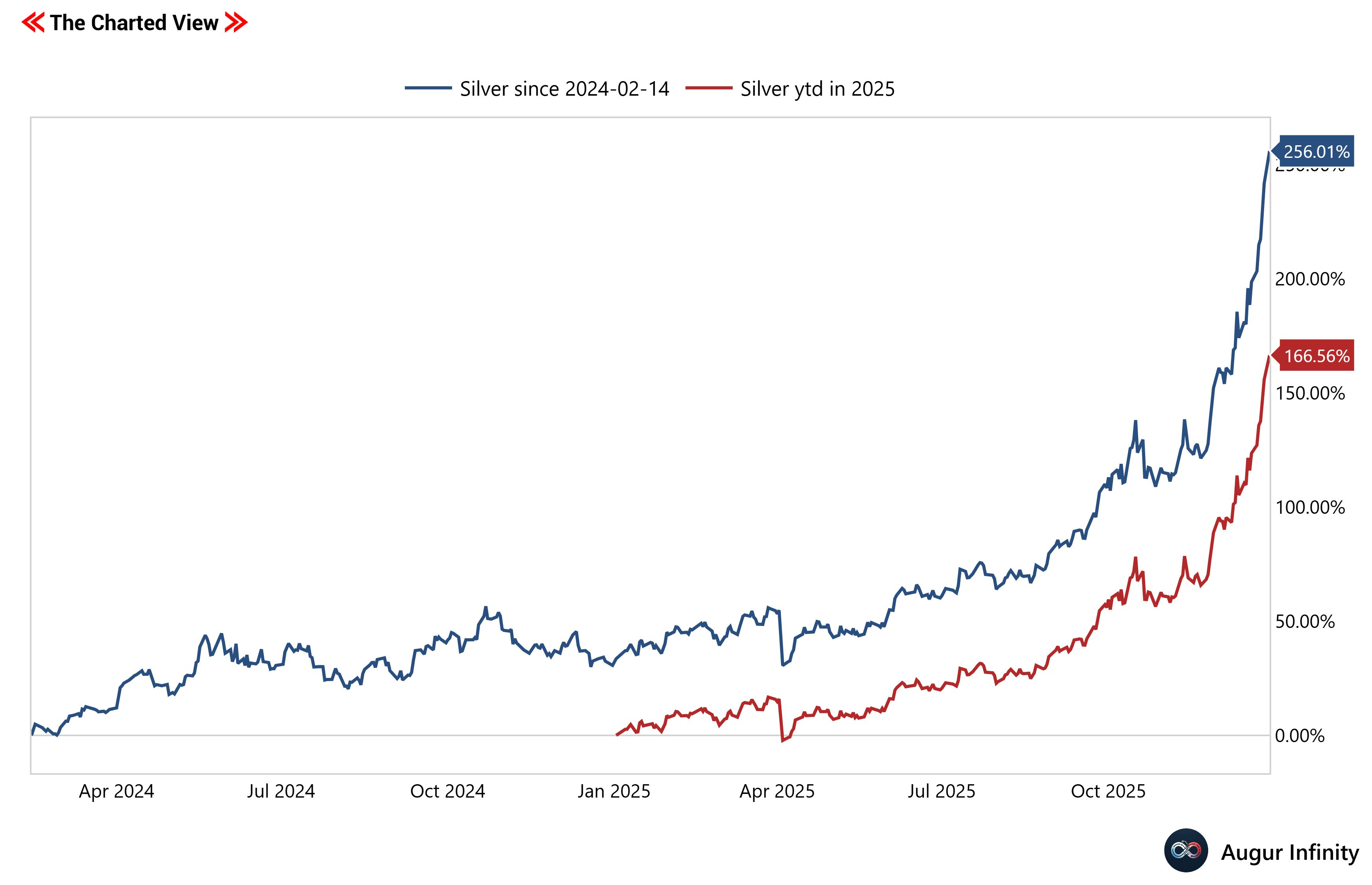 The price of an ounce of silver has been going parabolic in the latest cycle that started on 2024-02-14 and in 2025.